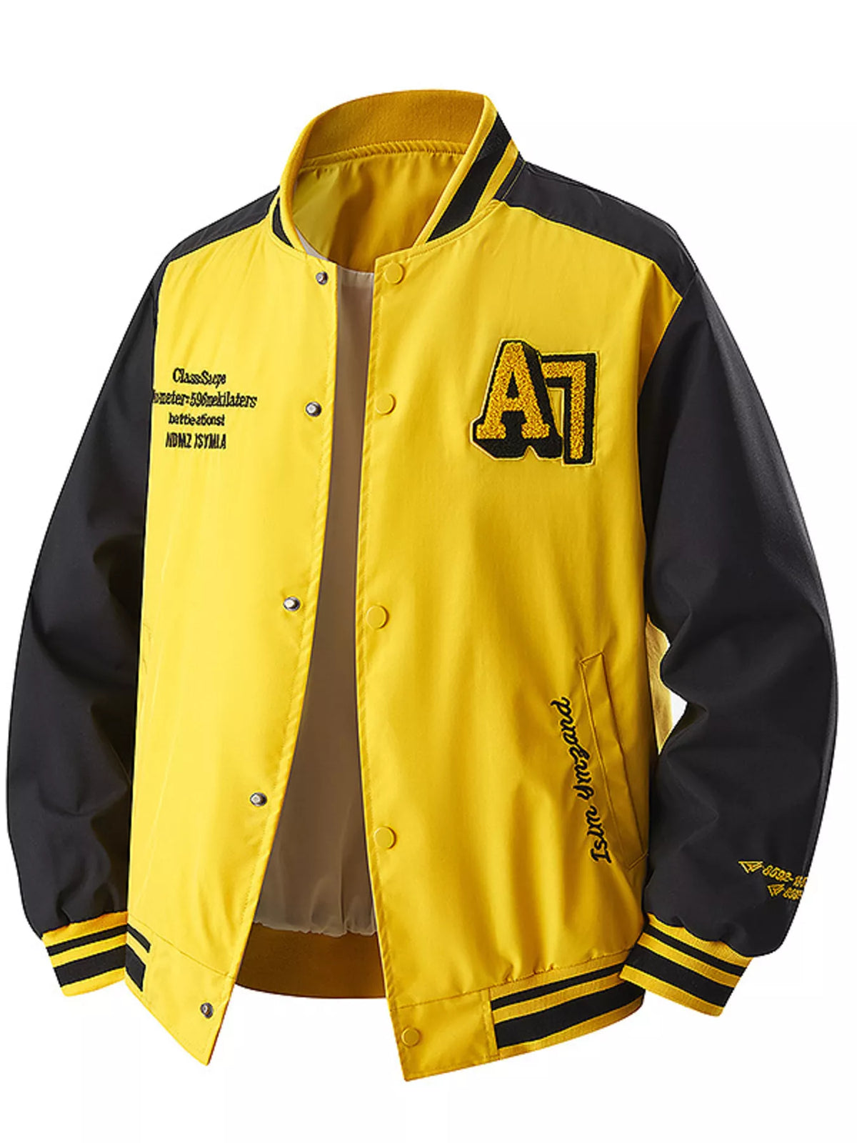 Men's Plus Size Snap Down Long Sleeve Jacket - Light Yellow / M