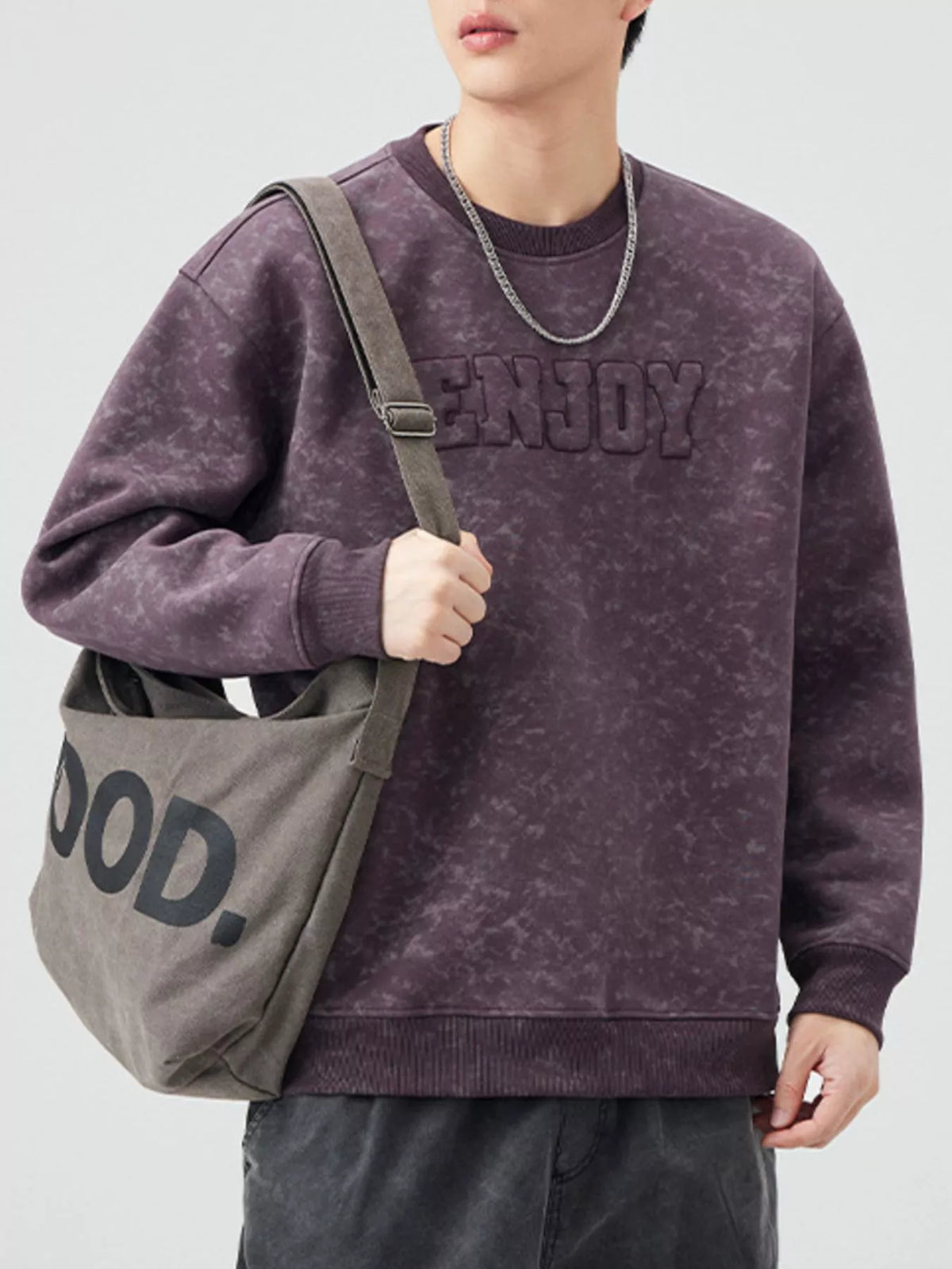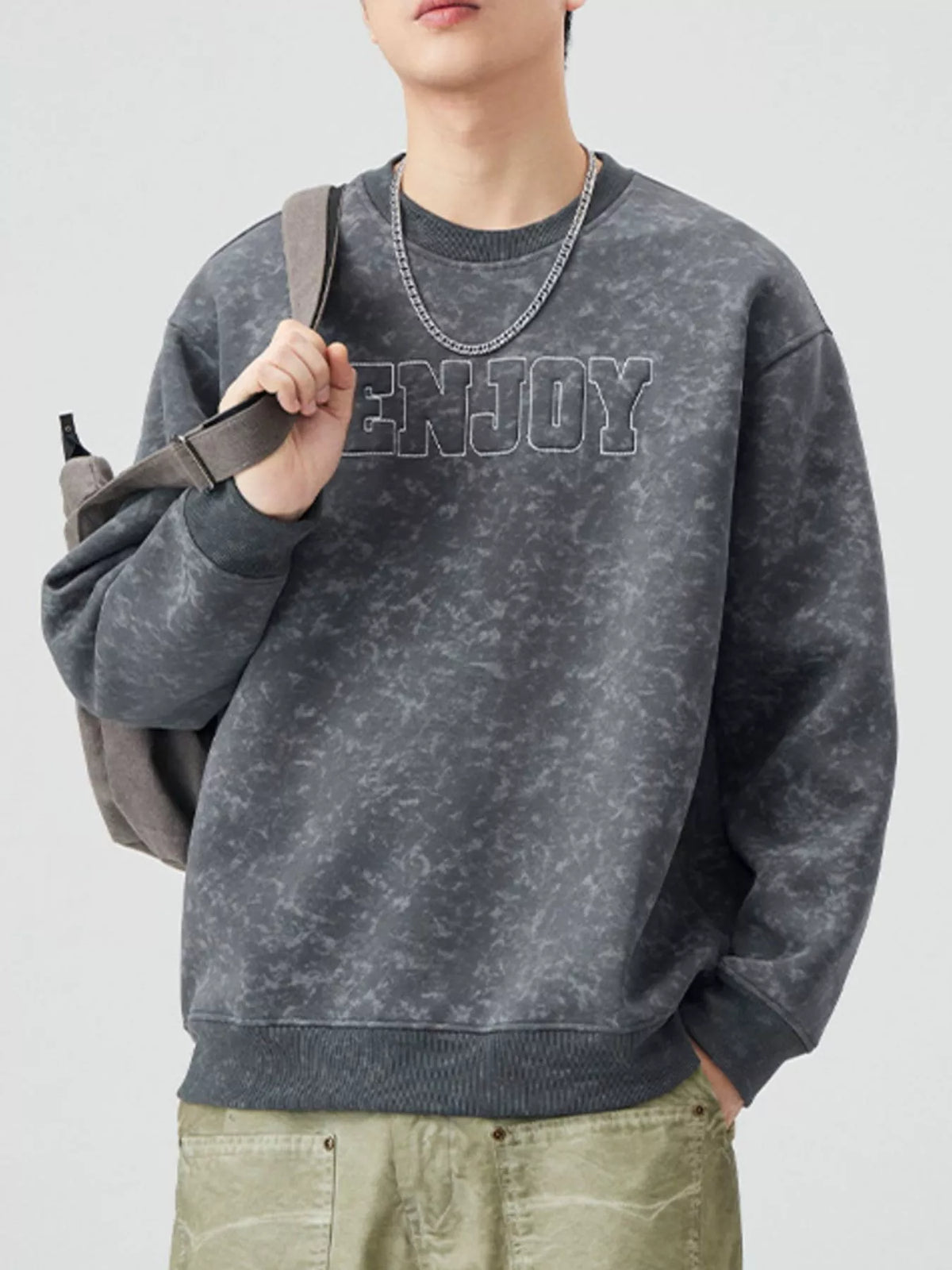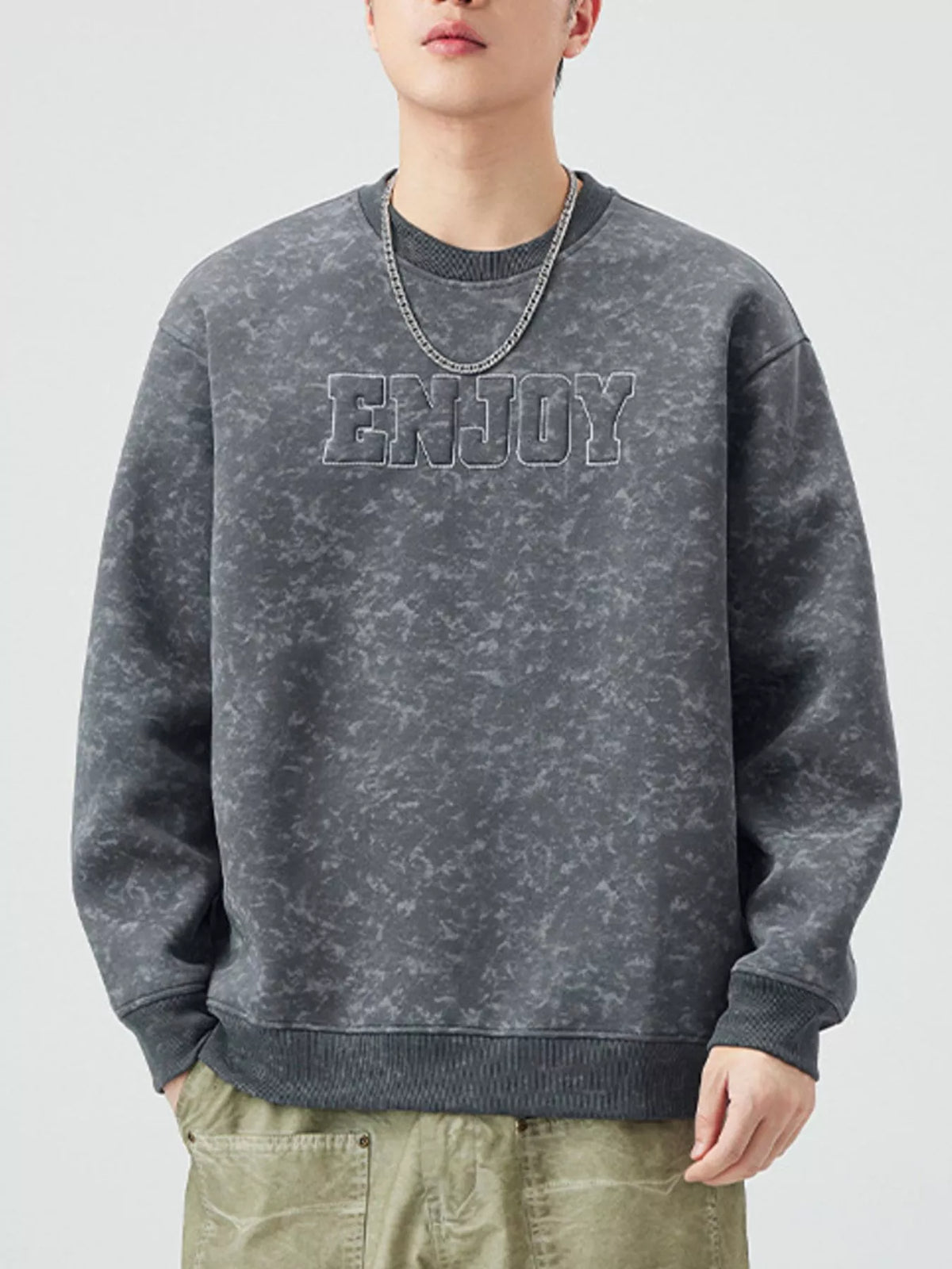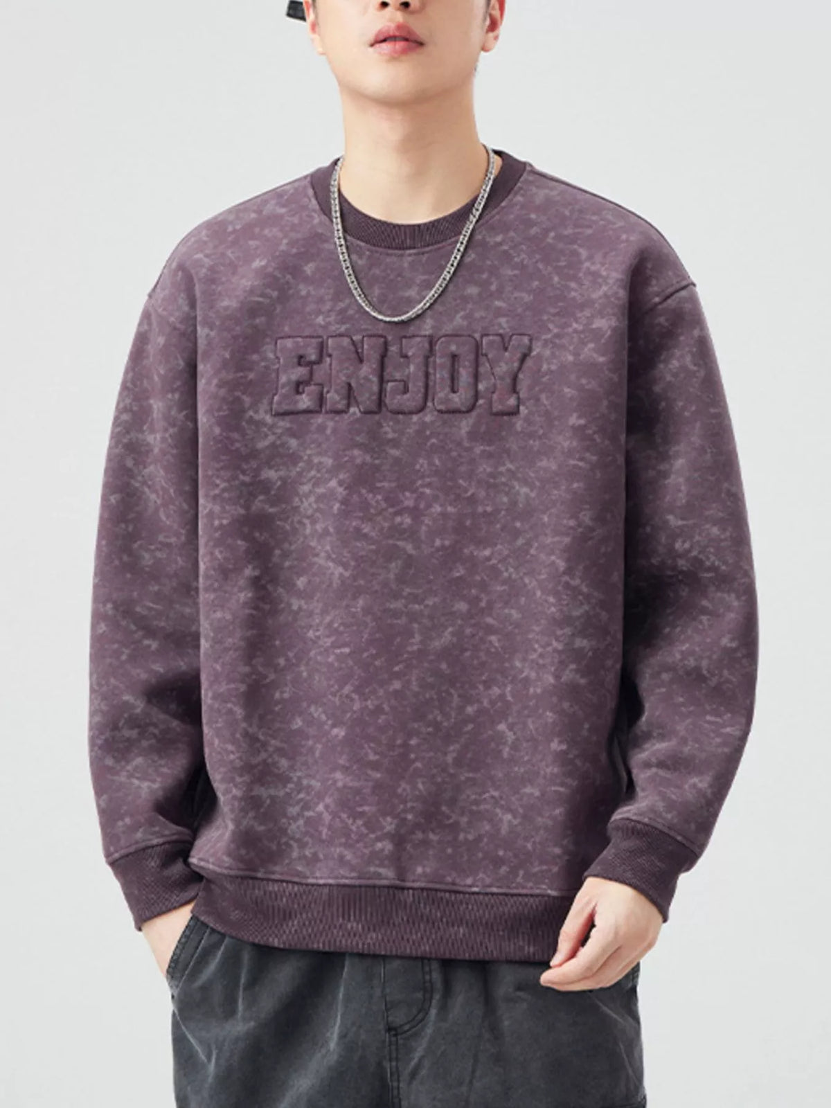 Men's Plus Size Enjoy Round Neck Long Sleeve Sweatshirt