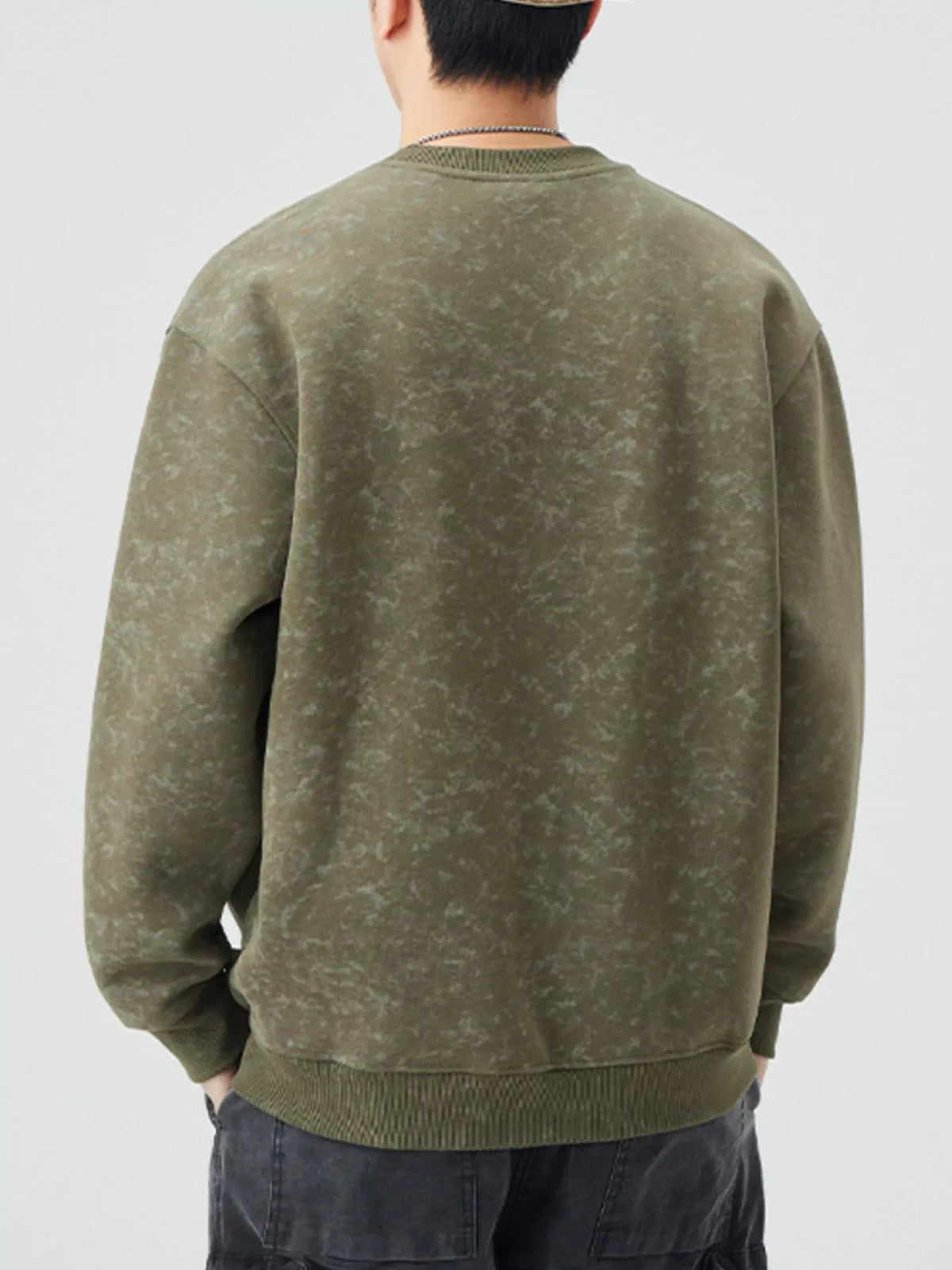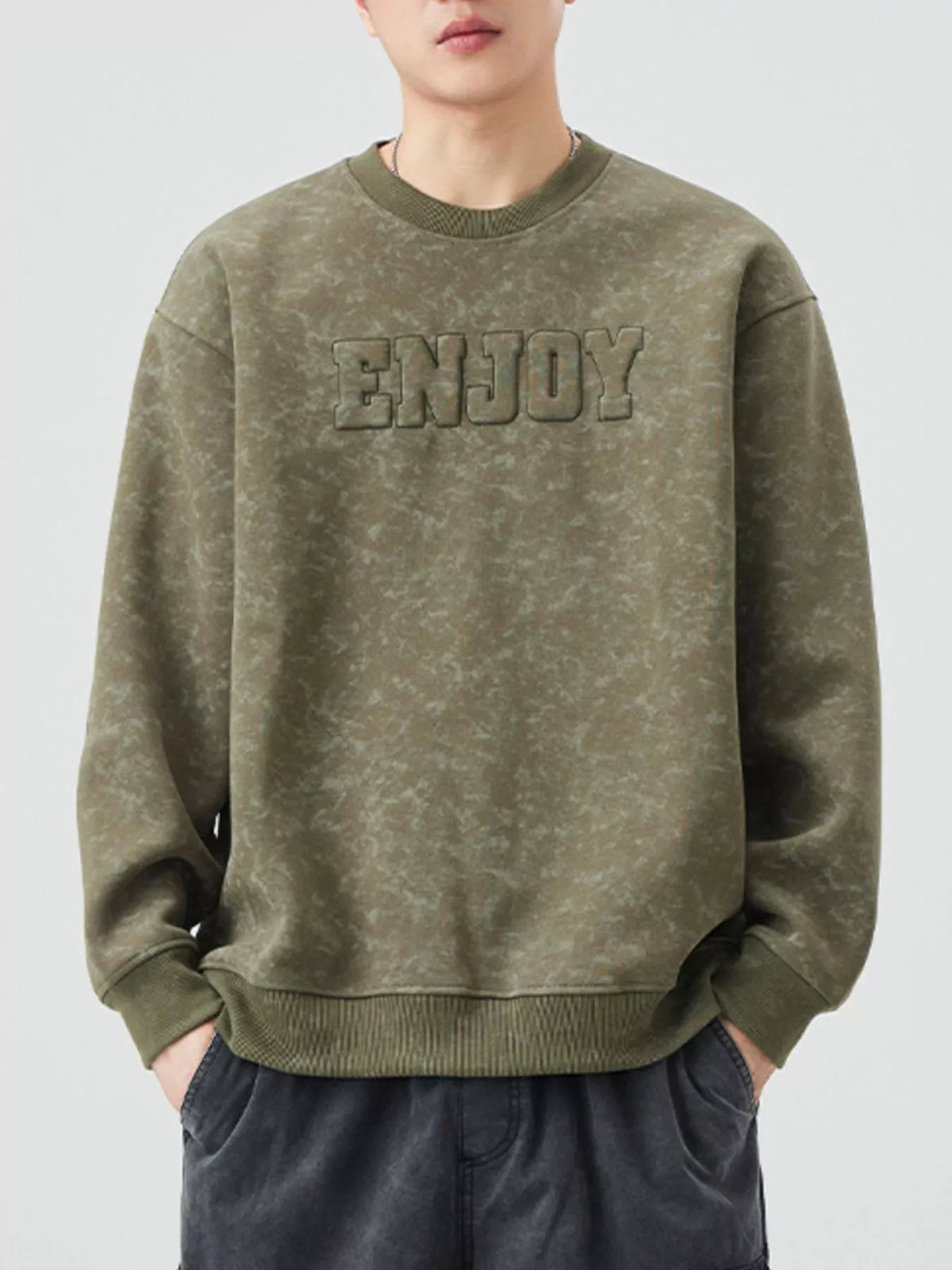 Men's Plus Size Enjoy Round Neck Long Sleeve Sweatshirt - Army Green / M