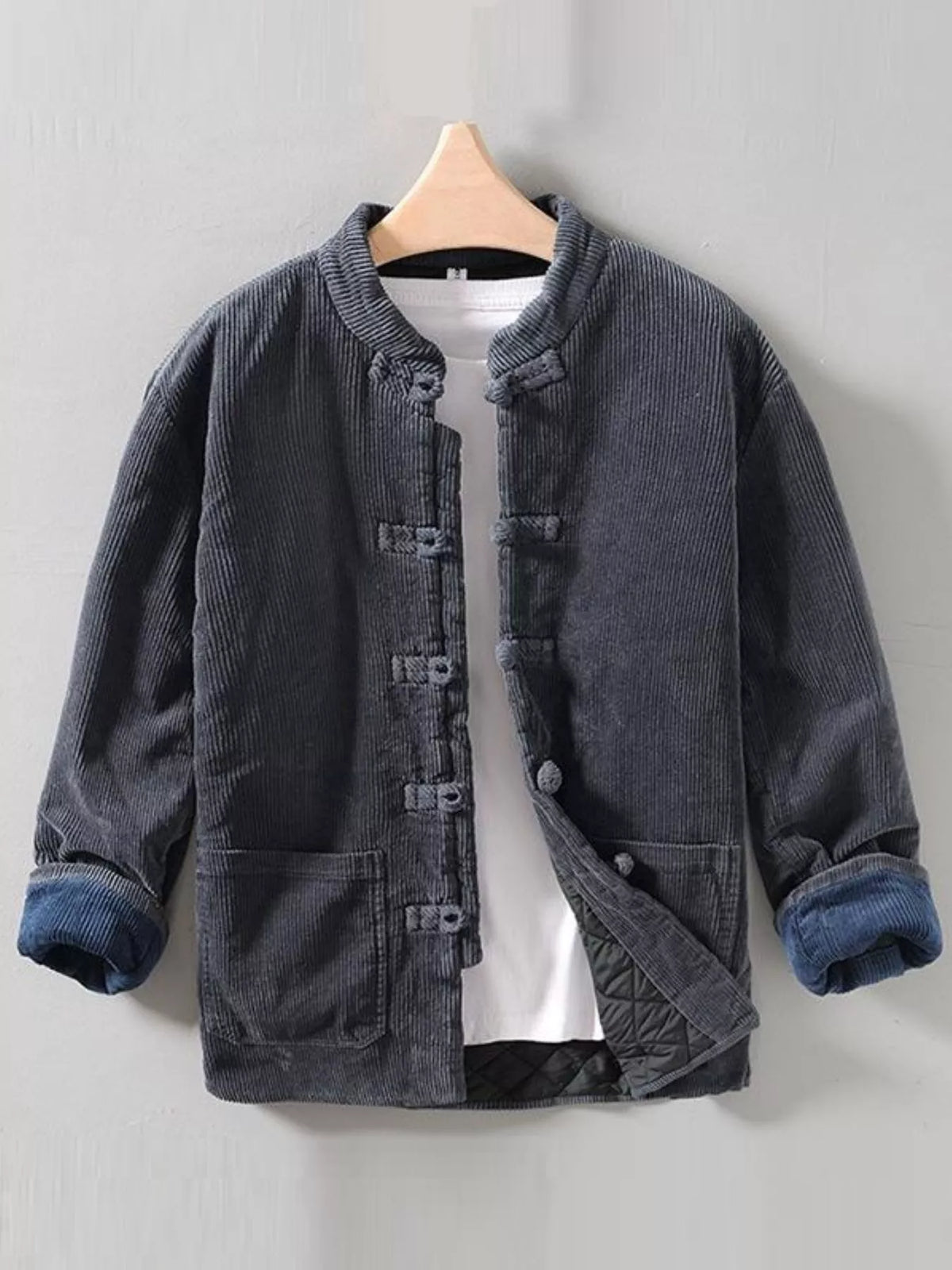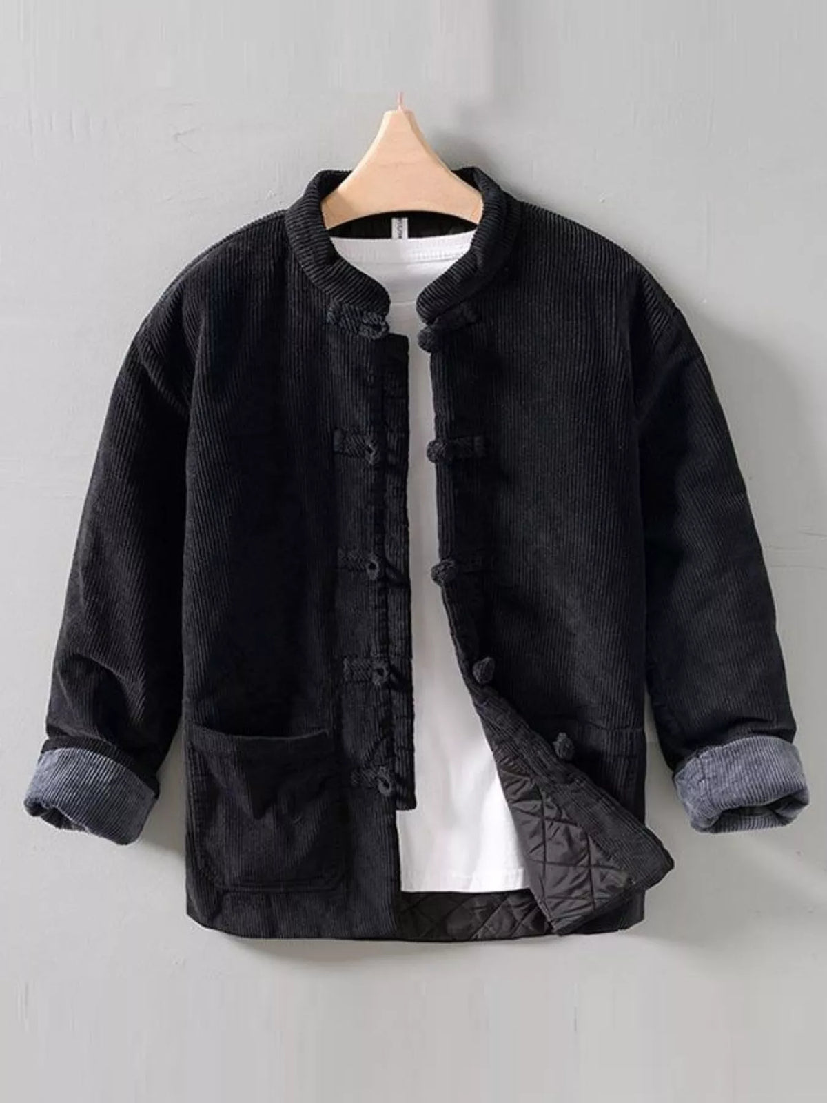 This Men's Button Front Long Sleeve Jacket falls under the Coat & Jacket -> Outerwear -> Coat & Jacket category. It's crafted from high-quality corduroy, offering a vintage and stylish look. The button-front closure and stand collar add a touch of sophistication, while the quilted lining provides extra warmth and comfort. Perfect for autumn and winter, this jacket combines fashion and functionality. The two front pockets offer convenient storage. Its durable construction ensures long-lasting wear, making it a versatile addition to any man's wardrobe.