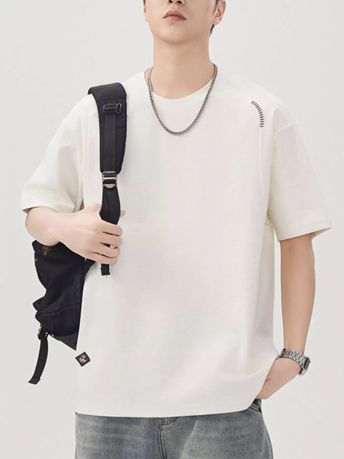 Men's Plus Size Casual Crew Neck Short Sleeve T-Shirt - Beige / M