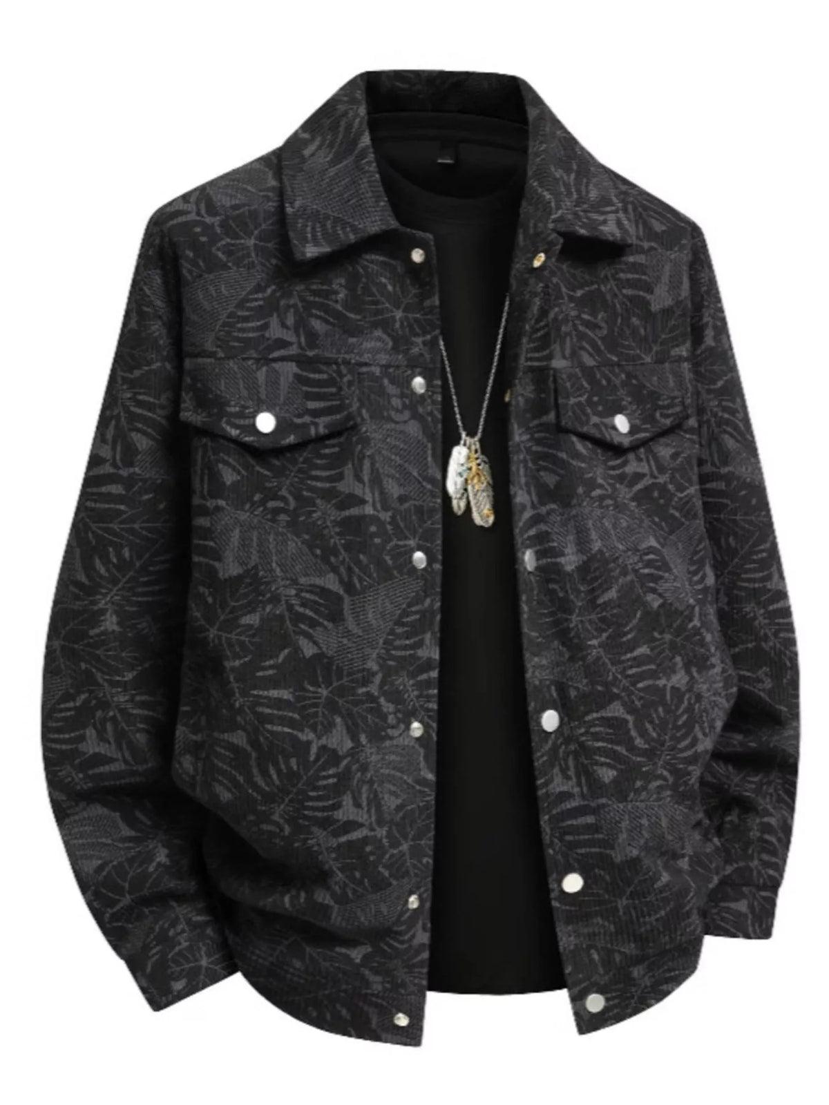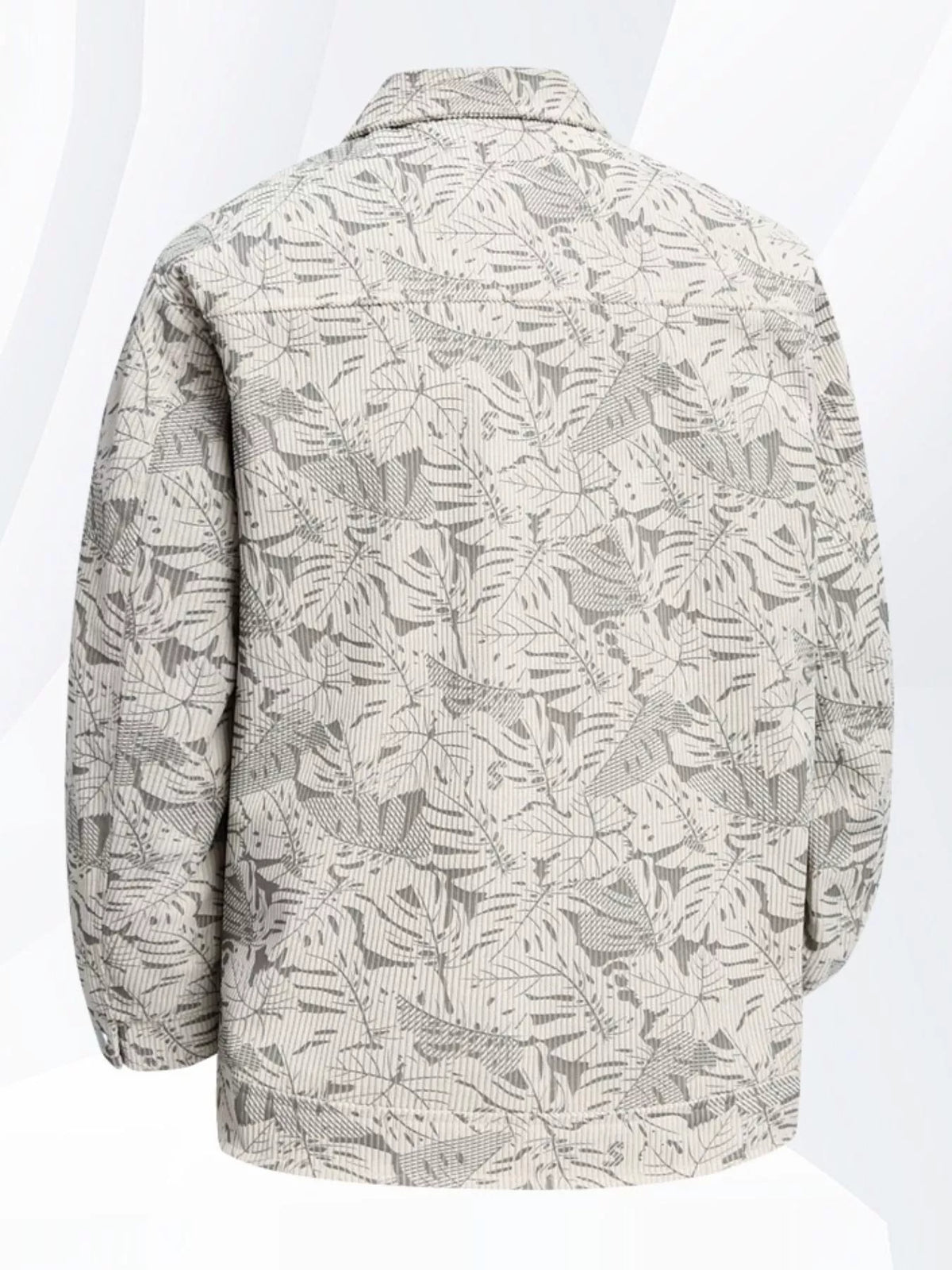 Men's Plus Size Printed Snap Down Casual Jacket - White / M