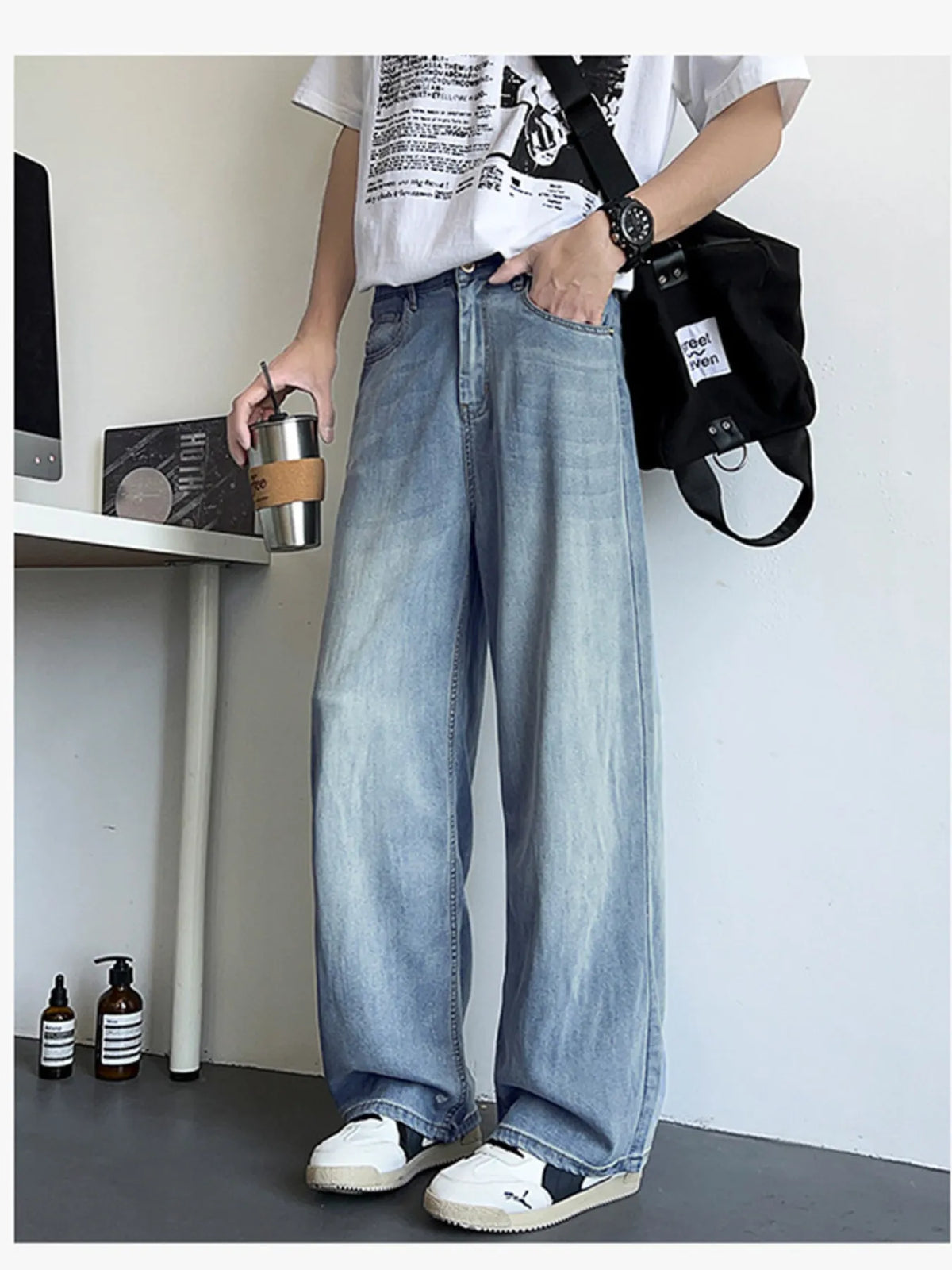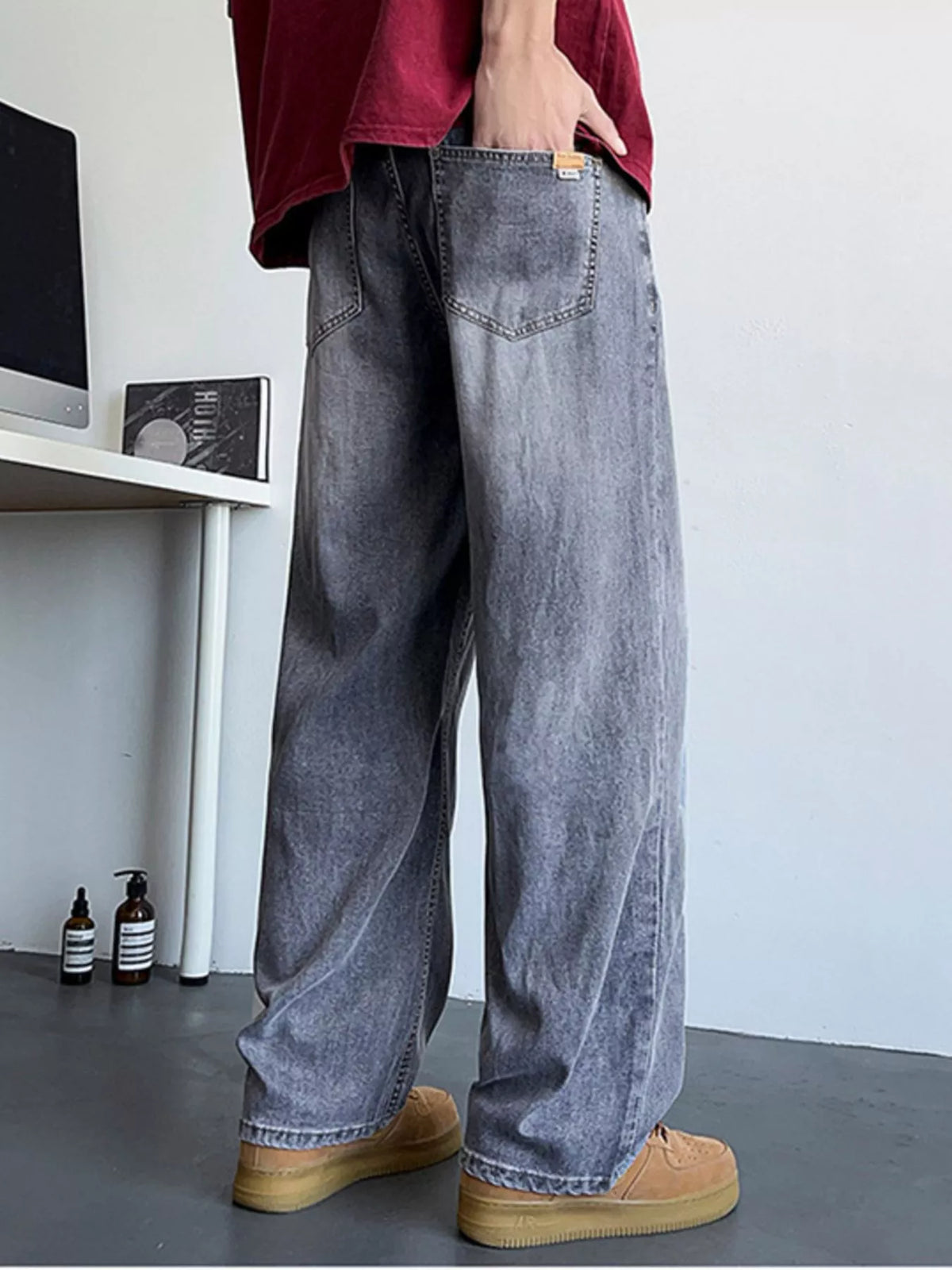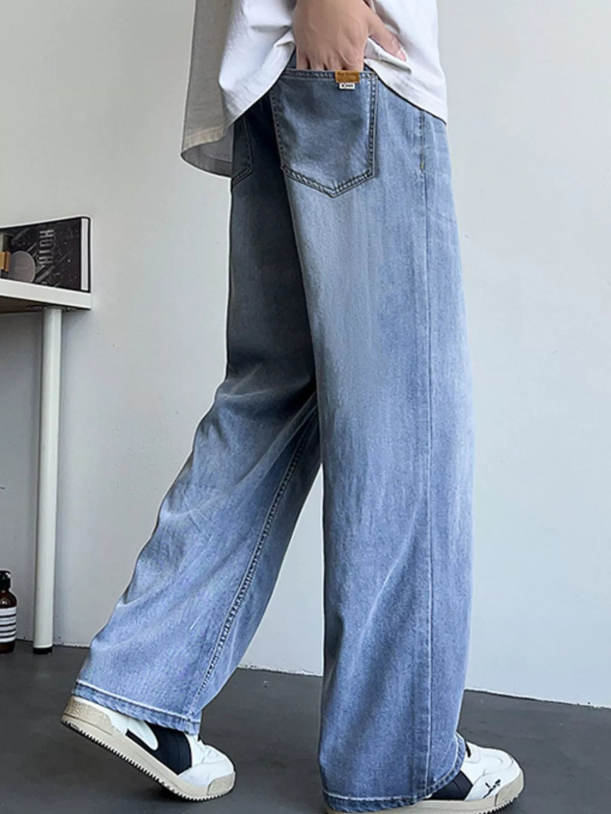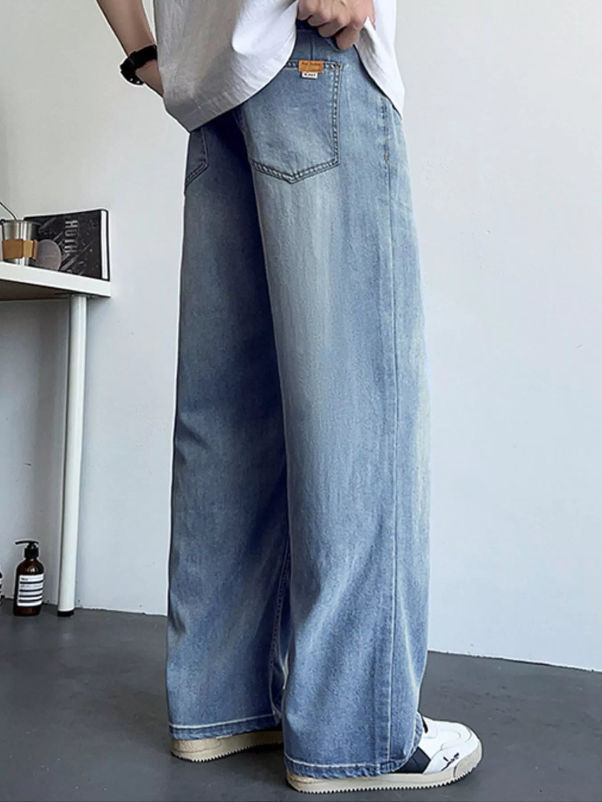 Men's Plus Size Vintage Wash Wide Leg Jeans