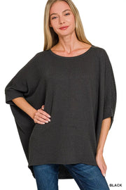 Zenana Raised Rib Bat Sleeve Top - BLACK / S/M